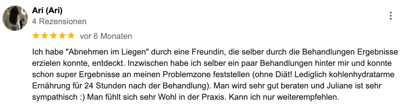 2-5cm weniger Umfang direkt nach der 1. Behandlung